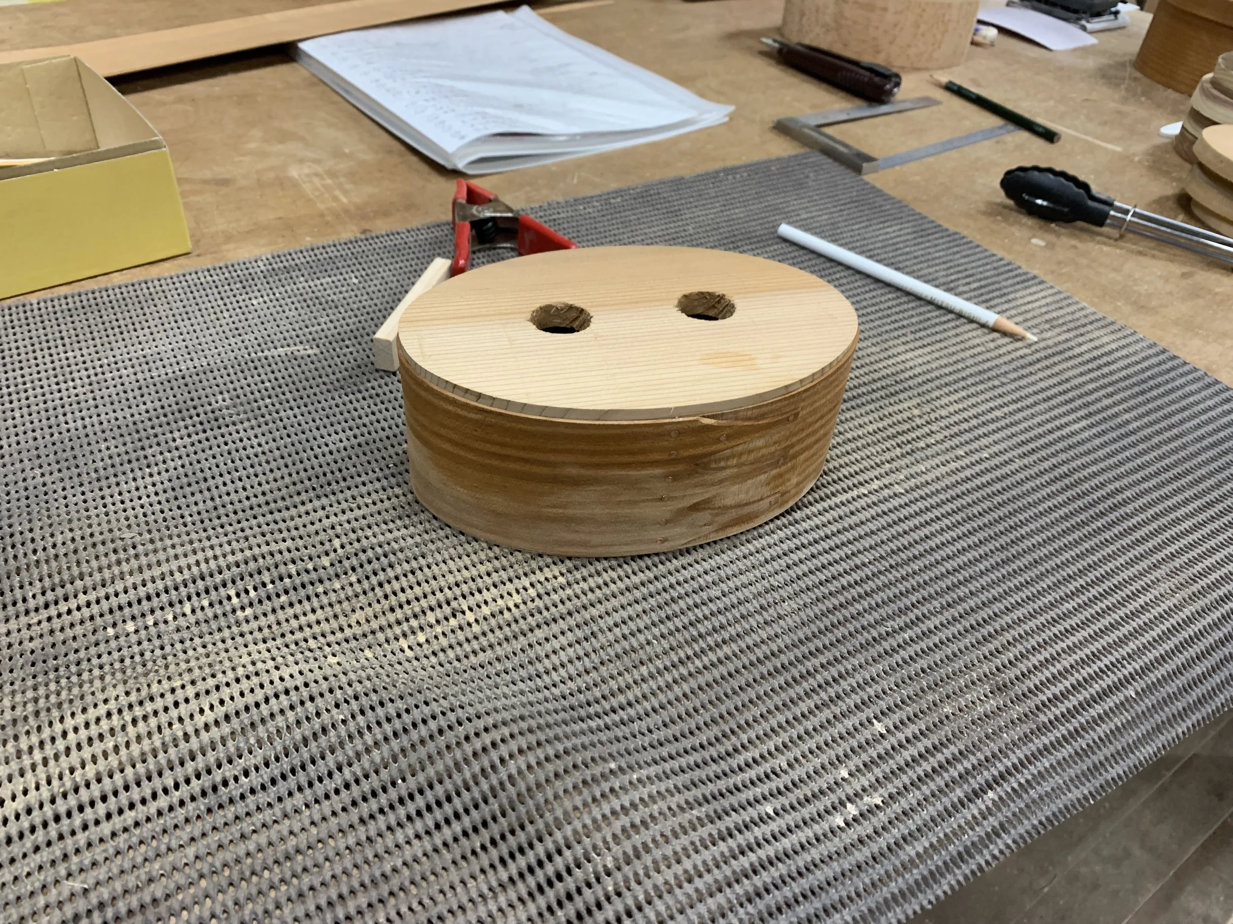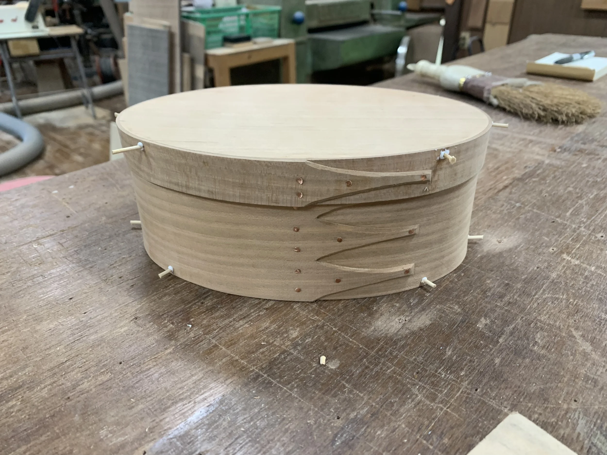 Shaker Box cherry, copper nails (2022) Reproduction of Shaker design. Made at the Arts and Crafts Village in Okayama, Japan.