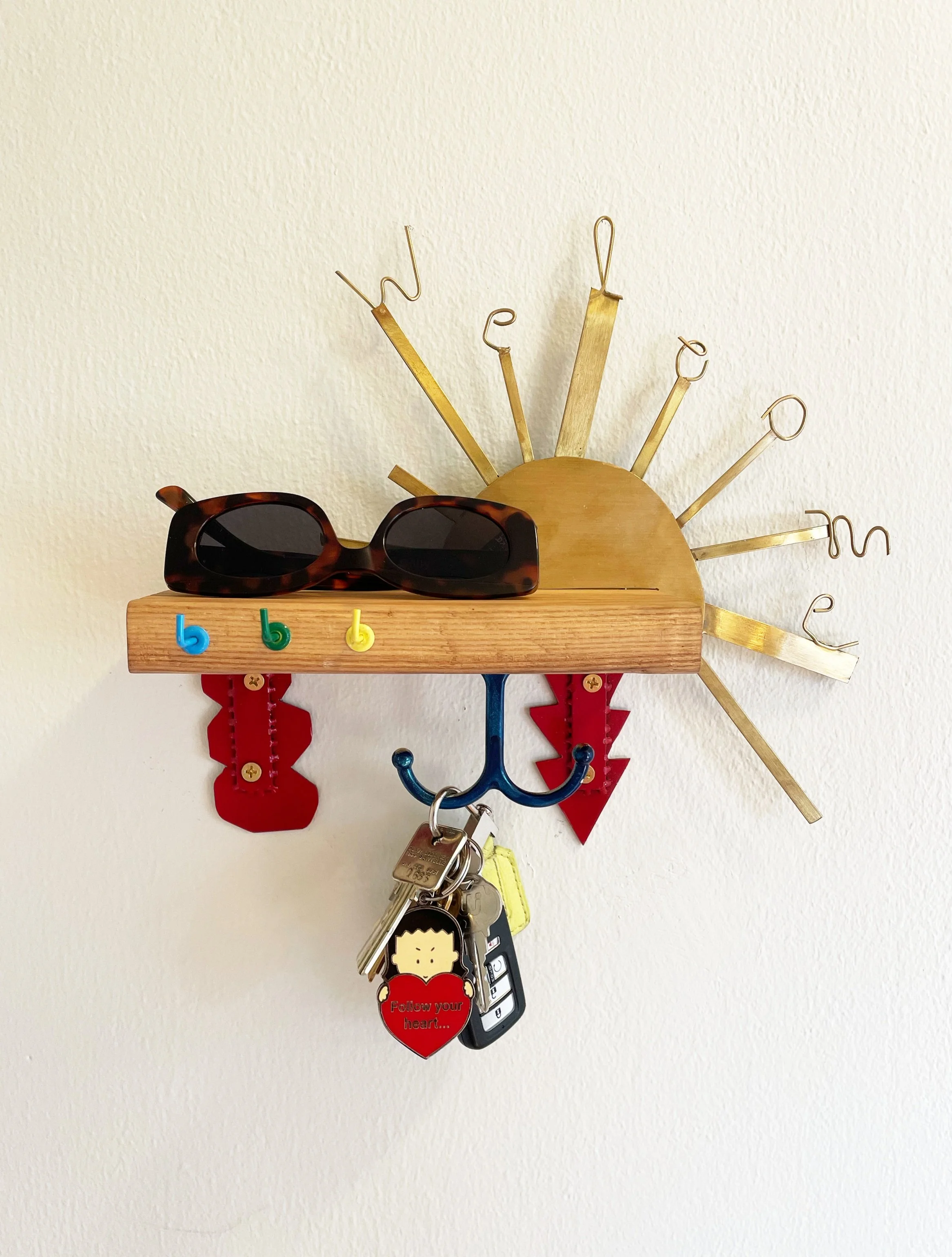brass sun, steel braces, metal hooks, ash offcut (2024)